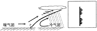 (4)请在以下示意图上绘制出该锋在P点处锋的垂直剖面示意图及P点两侧气流、天气状况,并在空白框