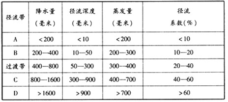 5、单选题 下表为中国河川径流带主要特征值。据此回答1~3题。