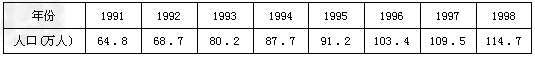 我国东南沿海经济发达区某新兴城市1991~1998 年人口数量的变化