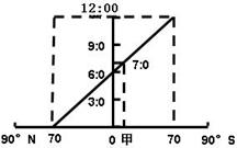 小题2:根据图中信息可知,甲的日出时间是7:00.白昼以正午12时对称,所以昼长是10小时。