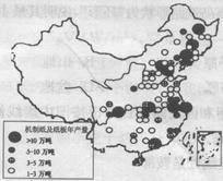 本题解析:造纸需要大量的水源。根据图中信息可知,造纸厂集中于东部地区,河流沿岸。