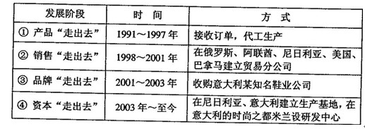 4、单选题 ?表中示意我国沿海某鞋业公司全球化发展的历程。读表l,完成下题。