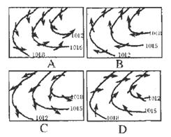 1.下列气旋、反气旋示意图中,反映寒潮源地近地面气流状况的