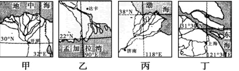 1、该三角洲地区最有可能位于下图中的