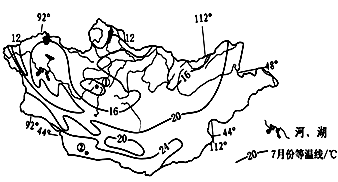 5、单选题 下图示意亚洲某内陆国水系分布和七月份气温分布情况。读图完成下列问题。