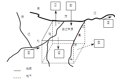 【小题2】三江平原沼泽广布的原因包括:季风气候,夏季降水多;纬度高,气温低,蒸发少,冻土广布,地表水不易下渗;地势低洼,河流流速缓慢,排水不畅。因此与水循环环节相关的有①②③④。