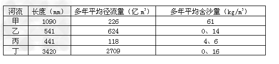 4、单选题 表为我国黑龙江、海河、闽江(福建境内)、伊犁河(发源于新疆)长度、径流量和含沙量情况。据此完成1 ~3题。