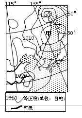 (4)判断图中字母E代表的锋面类型名称:描述当锋面E移到甲地时,甲地的天气现象。(2分)