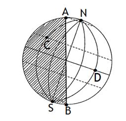 (3)线速度大小与纬度大小成反比,由图可知纬度:C<B<D<A,所以线速度为: A<D<B<C ; 地方时是因经度因素而形成的时间,经度相同地方时相同,由图可知A、B在同一条经线上,地方时应该相同。