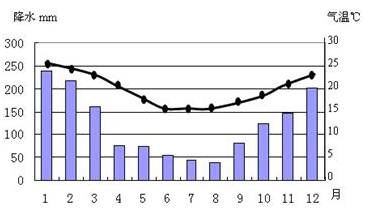 4、单选题 下图是北半球亚热带某地降水量逐月累计曲线图。读图完成下列问题。 |