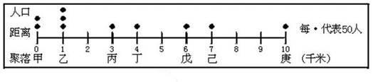 A.人口密度 B.交通方便 C.靠近学校 D.靠近市中心区 5、单选题 下图是某一狭长河谷地的交通线、聚落与人口分布示意图,该地居民正计划在其间兴建一处方便全体居民使用的大型商业中心。兴建原则是让所有居民到大型商业中心的总距离最小。根据此原则,应将该商业中心兴建于聚落(?)处。 |