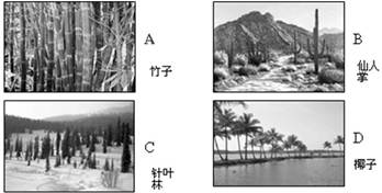 小题1:根据所学的对拓点的知识可知,住在(25°S ,65°W)的咸蛋超人“遁地”而行出来以后对应的点为(25°N ,115°E),这一定是在我国南方地区,气候典型的亚热带季风气候区,对应的代表性植物为竹子,故选A