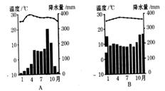 (3)图中A、B两图能反映④所在地区气候类型的是?。(2分)