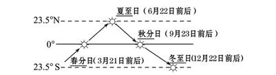 点评:学生只要掌握了太阳直射点的回归运动规律,就不难作答。
