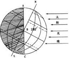 (1)这幅图表示的是_____月_____日太阳光照射情况,直射点的纬度是:_____纬______度。