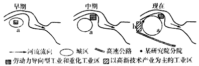(2)该城市中心早期以____________________优势吸引了工业的集聚。中期,大量工厂纷纷搬出市中心的主要原因是_____________________________________________________________________________。