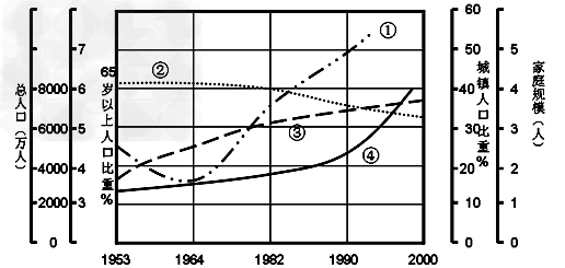 2.1990年以后,图中④曲线迅速上升的主要原因最可能是?