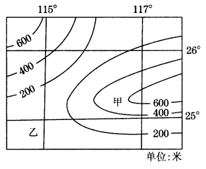1、单选题 读“某地区等高线示意图”,回答1~2题。