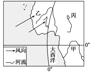 (1)读图,根据图中经度判断,图示区位于东半球, 乙地盛行西南季风,是气压带风带北移形成,所以此时是夏季。