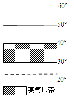 【小题1】根据温度变化规律可知为北半球,20°~30°盛行东北信风;30°~40°盛行下沉气流,形成副热带高压带;40°~50°盛行西南风;50°~60°冷暖气流交汇,盛行上升气流。