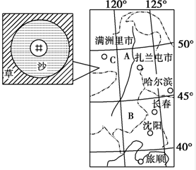(2)B地区是内蒙古的科尔沁地区,试分析荒漠化形成原因?(2分)