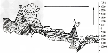 (5)丁处的地质构造常形成________(地形),与此成因相似的我国名山有________________。
