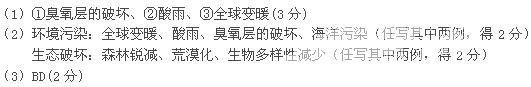 (1)在图中①②③处填上相应的全球性环境问题:①?、②?、③?(3分)