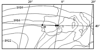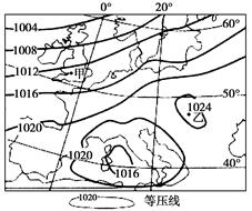 4、单选题 下图为欧洲局部区域某月气压分布图(单位:hPa)。读图完成小题。