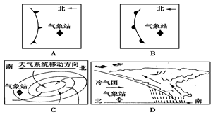 点评:本题属于常规考点,解题的关键是掌握不同天气系统影响的天气变化过程,结合常见天气系统的图示判读,注意抓住气象站的位置判读。