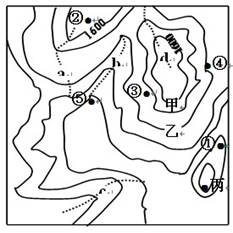 点评:本题考查等高线地形图的综合分析,难度较大。解答本题的关键是:(1)根据甲乙两地的相对高度为800米,由此可推知等高距为400米;(2)⑤地为一岛屿,可推出⑤地海拔应大于400米。