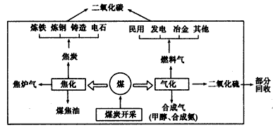 3、单选题 山西是我国煤炭输出最多的省区,随着煤炭深加工的发展,生产结构也发生了很大变化。下图是“山西某地煤炭资源开发和综合利用示意图”,读图完成1—2题。