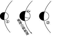 4、单选题  读图“公转轨道相邻的三大行星相对位置示意图”。
