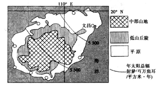 【小题1】从图中可以看出西南部比东北部年太阳辐射总量大。西南纬度较低太阳辐射较强说明与纬度有关;西南处于海岛的背风坡,晴天较多太阳辐射较强说明与地形有关。故B正确。