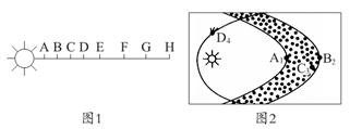 (1)若图1为太阳系中八大行星排列顺序示意图,下列字母代表的行星称:B?、 F?;按结构特征分类,它们分别属于:?行星、?行星。