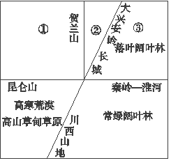 小题1:从图中看出,②位于大兴安岭的西侧,大兴安岭西侧——张家口——兰州——拉萨——喜马拉雅山东部一线基本上是400mm等降水量线。 也是我国的季风区与非季风区的分界线,年降水量在400mm以下的植被为草原,所以A正确。