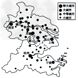 A.地租水平:乙>甲>丙 B.在该区域范围内,类似甲的城市数量最多 C.乙处最可能布局居民区 D.据图中显示的条件,乙地服务范围和功能有增大的趋势 3、单选题 读图,完成1~2题。 4、单选题 读某城市的成长模式图,回答以下18--19题。 5、单选题 关于下图示地区城市等级,服务功能和服务范围的叙述,正确的是 |