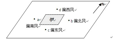 5、单选题 图中a、b、c、d四点为甲城市反气旋过境时的风向。读图回答题。