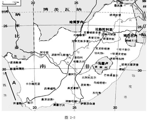 【小题1】根据图2-3,说明南非这一国家的地理位置特征及重要性。