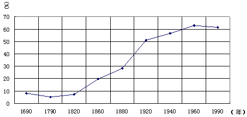 (1)据美国城市化进程表,绘出城市人口比例1690——1990年间的变化曲线。
