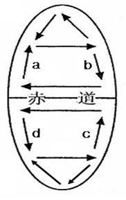 1.比较海水等温线a、b、c的大小关系2.若该海域位于太平洋,则图中洋流是