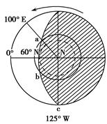 A.a地正午太阳高度为53°26′ B.b地所在的西西伯利亚平原甜菜生长茂盛 C.c地正午时,b地刚好日落 D.a、b、c三地正午日影都将变长 |