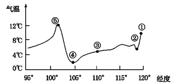 A.①地气温日较差大于③地 B.7月,②地等温线向南凸出 C.⑤地气温年较差小于③地 D.1月,②地等温线向北凸出 |
