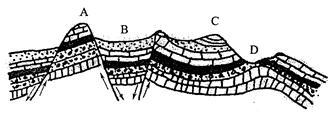 (3)图中A、B、C、D四处属于储油构造的是?。