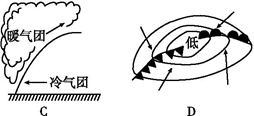 小题1:3~5月份,长江中下游地区出现严重干旱天气,是下列哪种天气系统强盛造成的