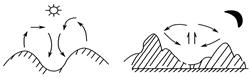 若该环流发生在夜晚山谷地区,则?是山地,?是谷地。