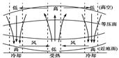 则a处等压面上凸、b处等压面下凹。高空与近地面气压中心相反。等压面如下图所示: