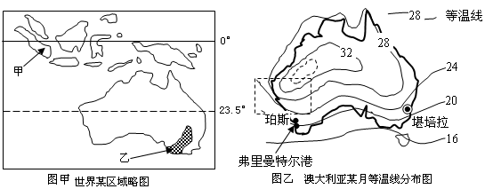 (2)指出图甲中乙区域农业生产地域类型。指出该区域农业生产限制性的自然条件。(4分)