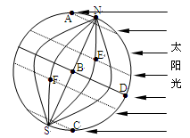 (3)A、B、C、D、E、F六点中,昼长达到一年中最大值的有 点,昼夜等长的有 点,昼长达到一年中最小值的有 点。