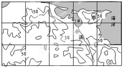 4、单选题 图是某地海岸地区的等高线(单位:米)示意图,比例尺为1:50000,图中每一方格的边长为2厘米。读图回答下列各题。