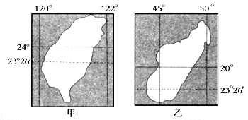 A.甲图比例尺比乙图小 B.甲岛屿的面积比乙岛大 C.甲岛南北距离比乙岛长 D.甲、乙两岛都在东半球、低纬度 |